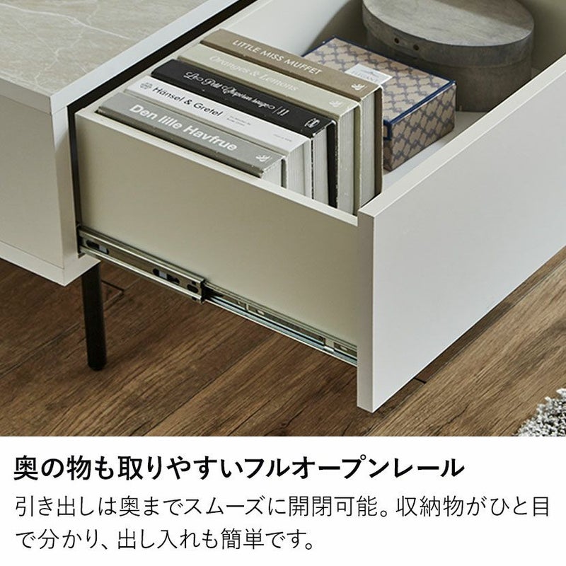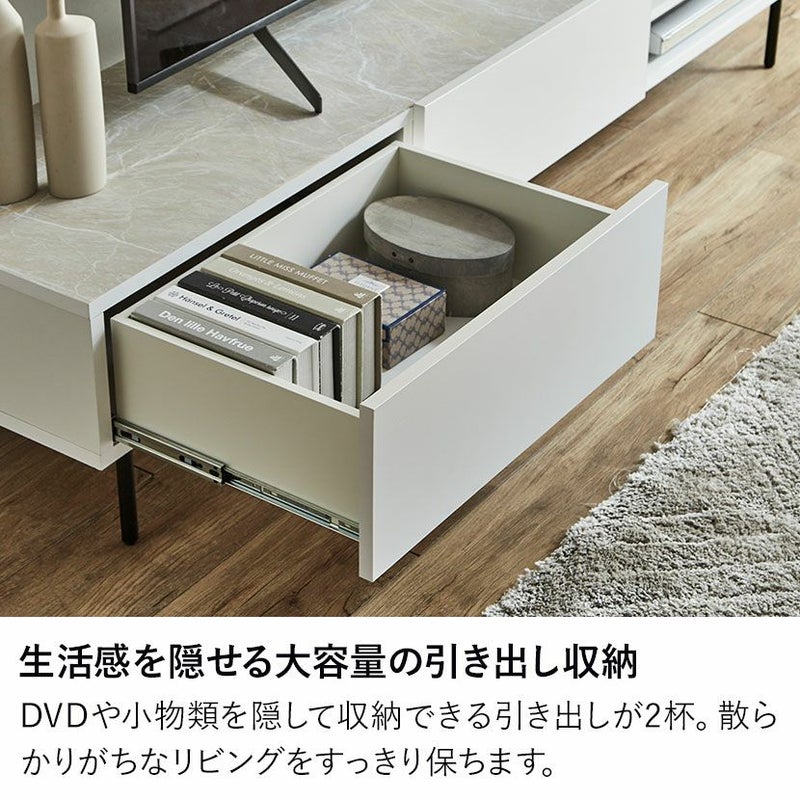 DVDやCD、テレビ周りの小物などをたっぷりと収納できる引き出しが2杯備わっています。