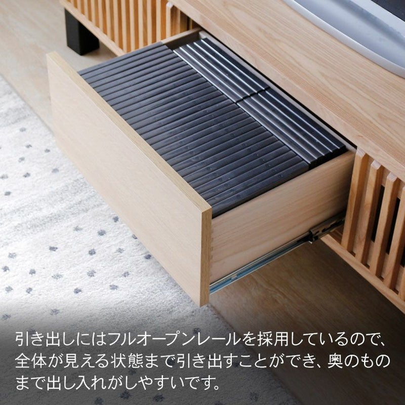 ●フルオープンレールを採用した引き出しなので、全体が見える状態まで引き出すことができ、奥のものまで出し入れがしやすいです。