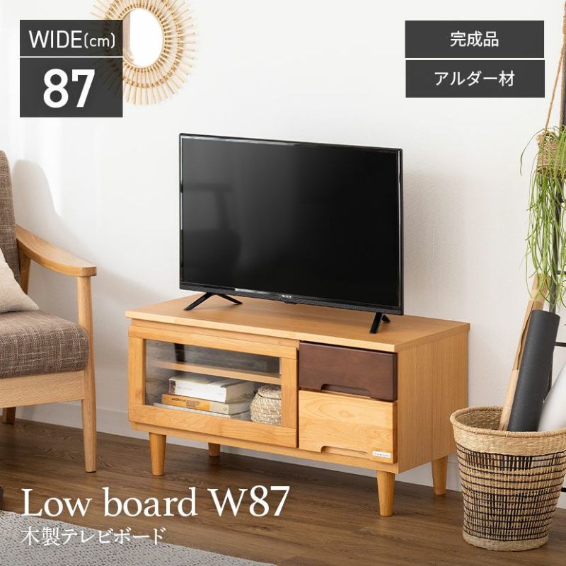 アルダー材を用いた、コンパクトなリビングシリーズ。アルダー無垢がやさしい印象を受けます。
