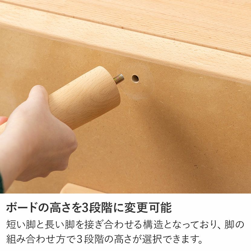 短い脚と長い脚を接ぎ合わせる構造となっており、脚の組み合わせ方で3段階の高さが選択できます。