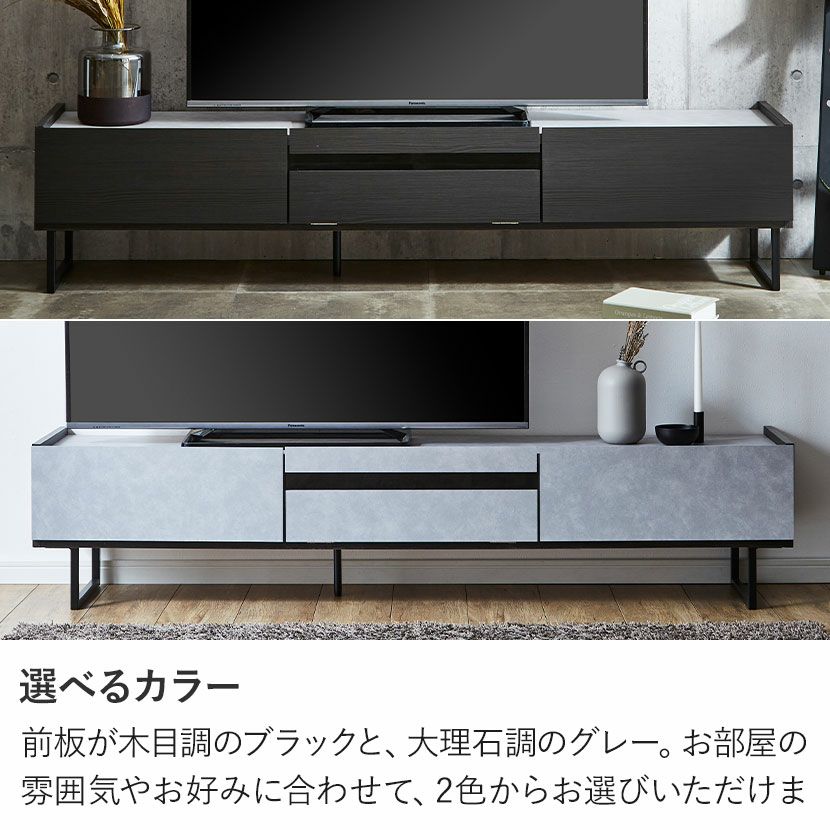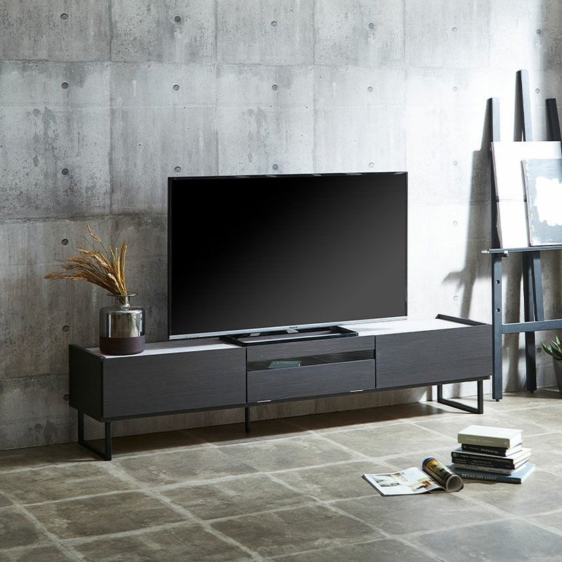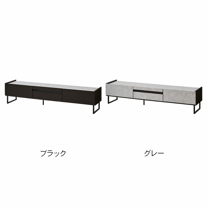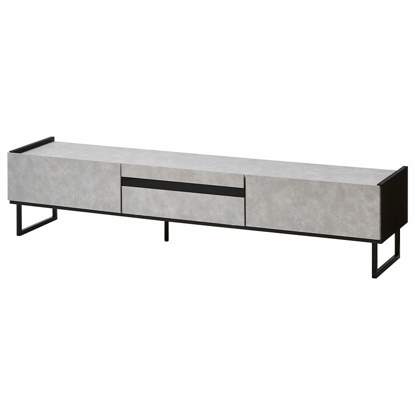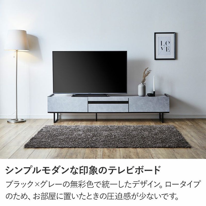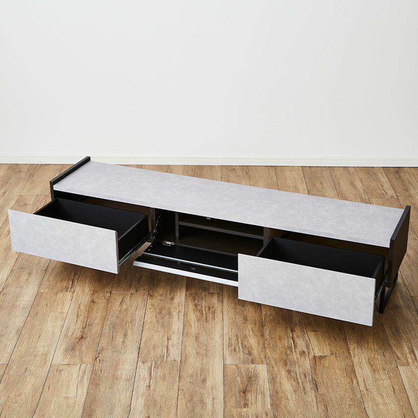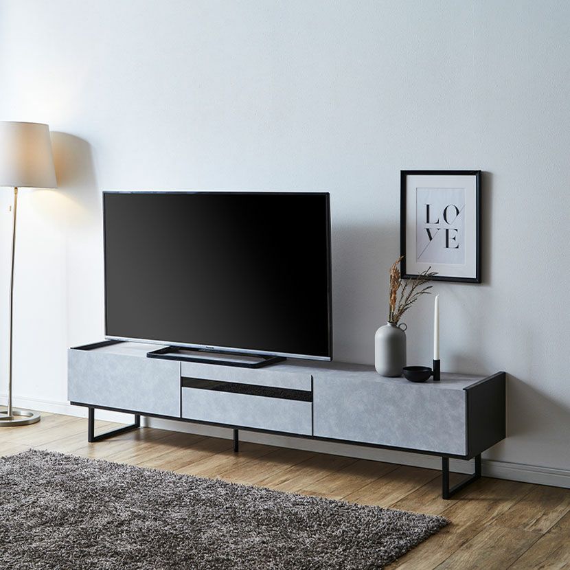 ブラック×グレーの無彩色で統一した、シンプルモダンな印象のテレビボード。