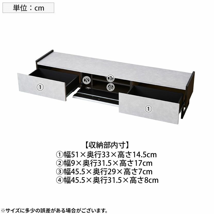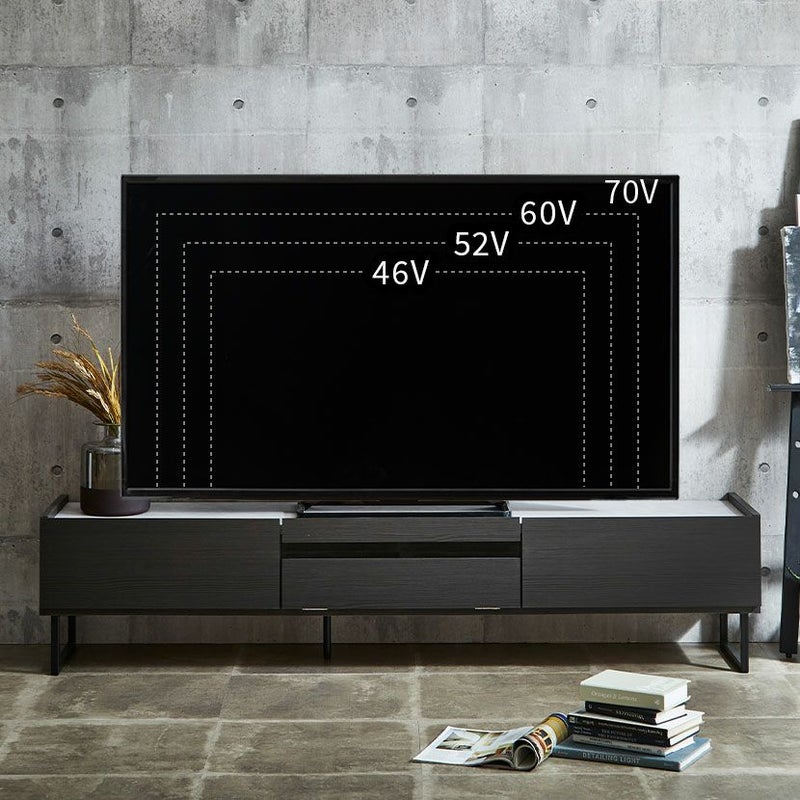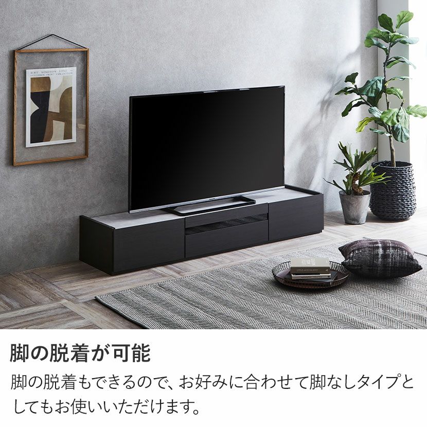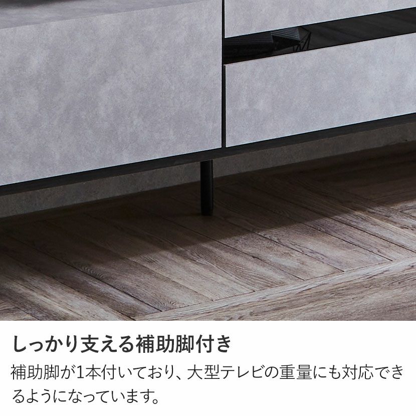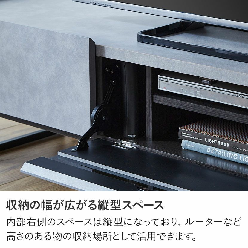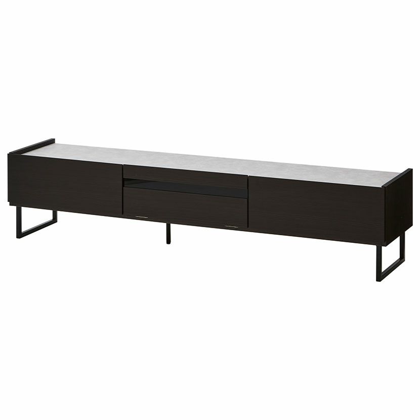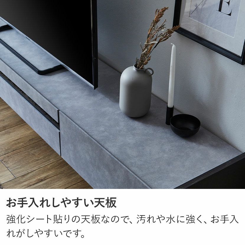 ブラック×グレーの無彩色で統一した、シンプルモダンな印象のテレビボード。