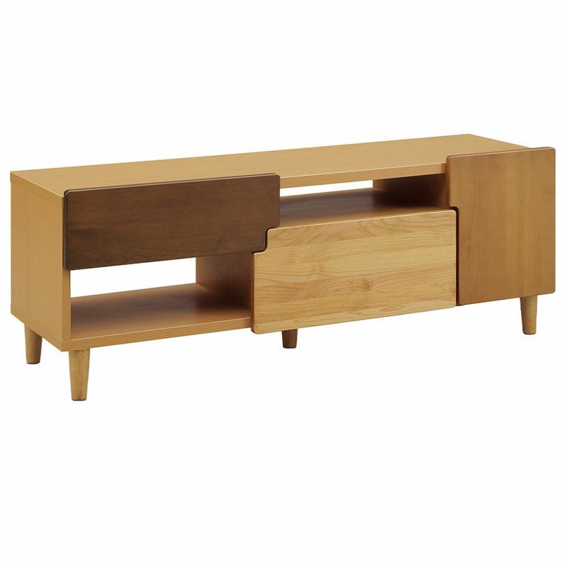 ●個性的なフォルムと遊び心のあるウッド調のグラデーションカラーが特徴的な、木製TVボードです。