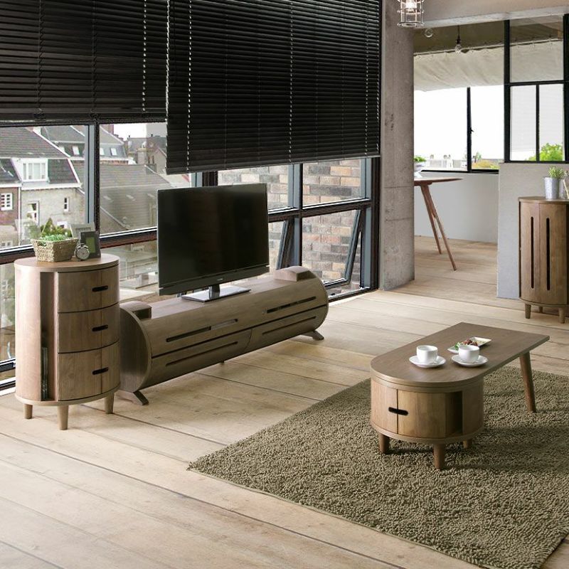 インテリアのアクセントになる、個性的な円柱モチーフのデザインが特徴です。