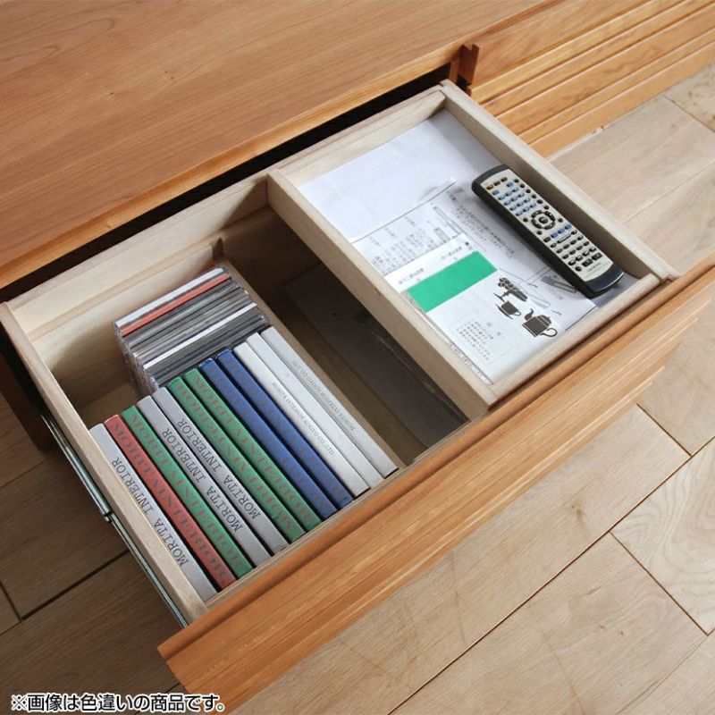 ●引き出しにはCDやDVDの収納に便利な仕切り板と、リモコンや小物などを置く小箱が付いています。