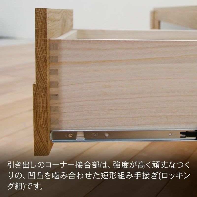 丸田木工株式会社は1958年に福岡県大川市にて設立された老舗家具メーカーになります。独自のデザイン、企画を行い、一貫した自社工場生産にて高品質な家具を生産しています。生涯を伴にする家具だからこそ、素材選びには徹底したこだわりを持っており、商品に使用している木材は樹木の上質な部分だけを厳選し、合板、パーティクルボードは「F☆☆☆☆」のものを使用していますので、人にやさしく仕上がり感や耐久性に格別な違いがあります。また素材だけでなく、高級婚礼家具製造で培ってきた、気密性の高い桐引き出しに強いこだわりを持っていおりう、熟練の職人の手によって丁寧に調整・仕上げがされているのが特徴です。国産家具だからこそできる細かい技術がたくさん詰まっている製品を提供しています。