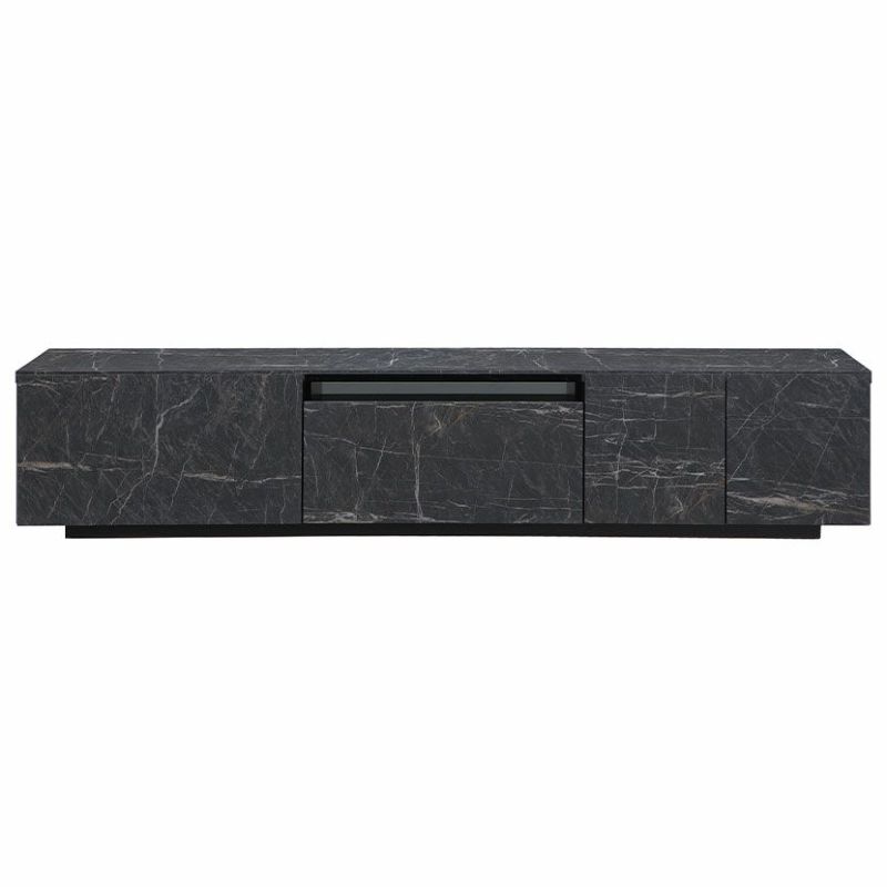 テレビボードには石目調のシートを使用。近くで見ても柄素材だと分からないほどリアルな素材感です。