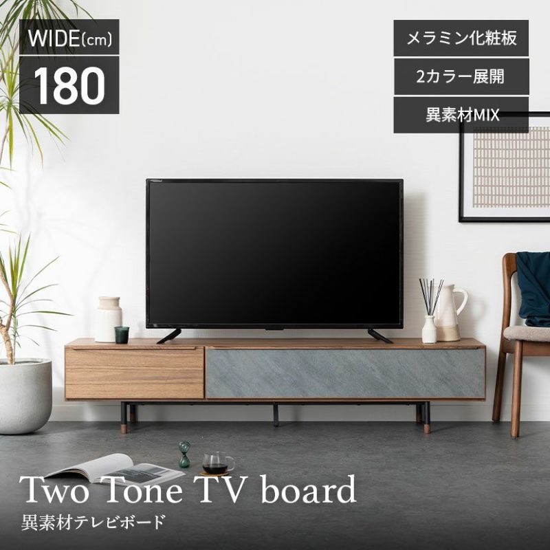 天然木突板とメラミンのMIXが特徴的なテレビボード。シンプルでモダンなデザインです。