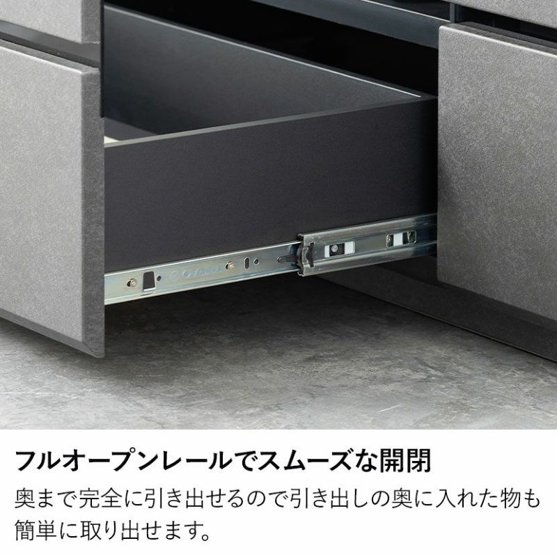 引き出しにはフルオープンレールを採用しているため、奥まで完全に引き出すことができ、引き出しの奥に入れた物もスムーズに取り出せます。