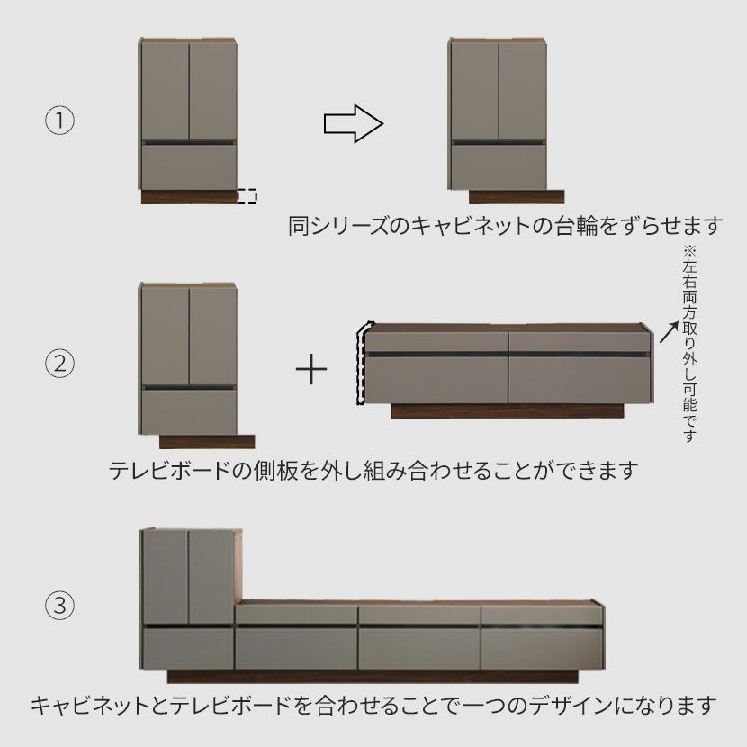 側板は左右どちらにも取り付け可能なので、お部屋に合わせてレイアウトできます。