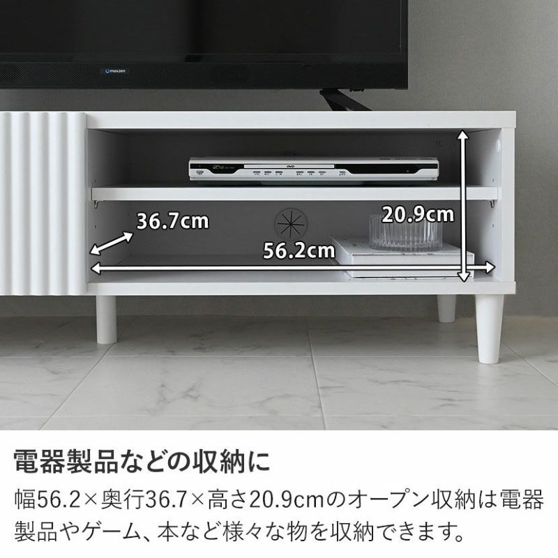 幅56.2×奥行36.7×高さ20.9cmのオープン収納は電器製品やゲーム、本など様々な物を収納できます。