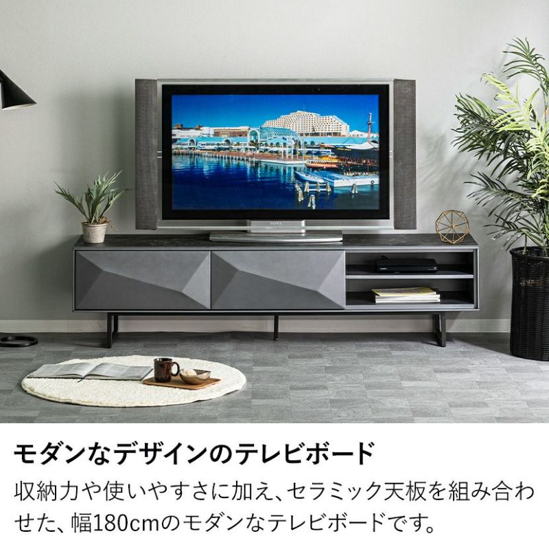 光の陰影が生まれ、単調になりがちなテレビボードに個性をプラス。