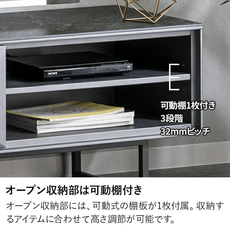 AV機器の収納やディスプレイに便利なオープン部には、可動式の棚板が1枚付属。