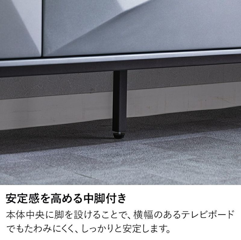 本体中央に脚を設けることで、横幅のあるサイドボードでもたわみにくく、しっかりと安定します。