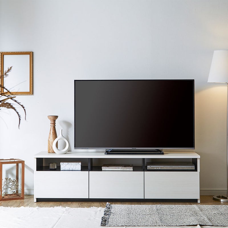 ハンドルレスタイプのローボードで、取っ手がないシンプルでフラットなデザイン。