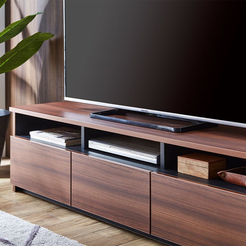 デッキ収納部は背板のないオープン仕様で、AV機器の熱を逃がしやすく、機器を安全に保護します。