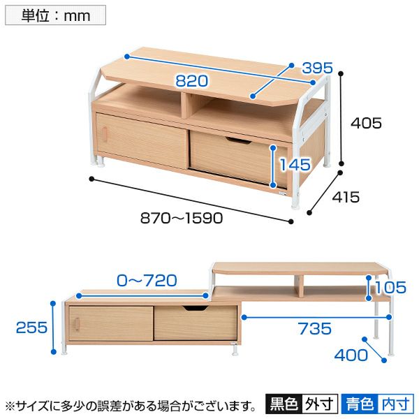 | サイズ | 幅870~1590×奥行415×高さ405mm |