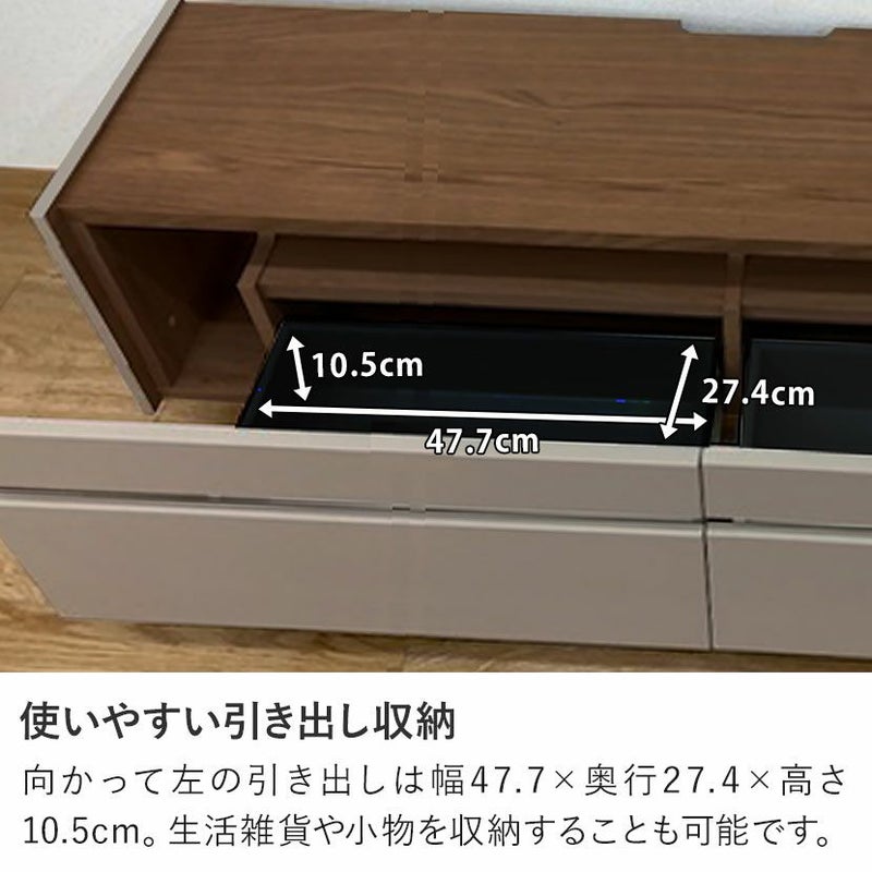 向かって右の引き出しは幅64.7×奥行27.4×高さ10.5cm。電器製品などすっきり綺麗に収納できます。