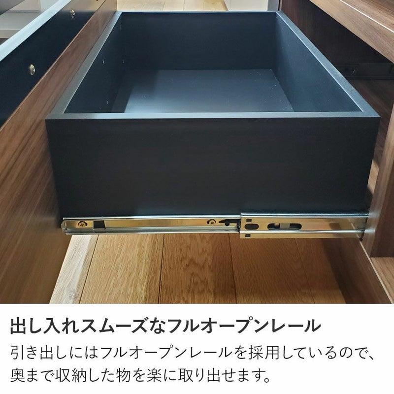 引き出しにはフルオープンレールを採用しているので、奥まで収納した物を楽に取り出せます。