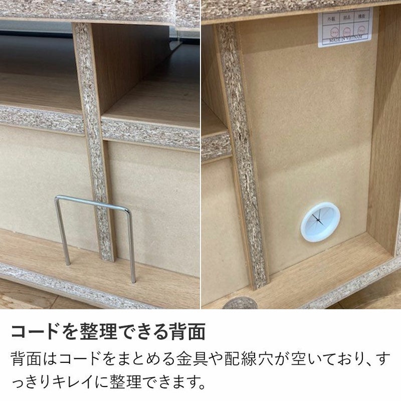 背面はコードをまとめる金具や配線穴が空いており、すっきりキレイに整理できます。
