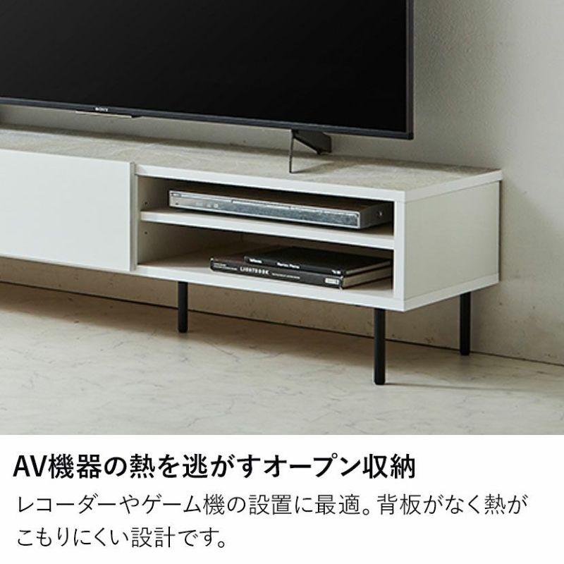 レコーダーやゲーム機、サウンドバーなどのAV機器を設置するのに便利なオープンスペースを備えています。