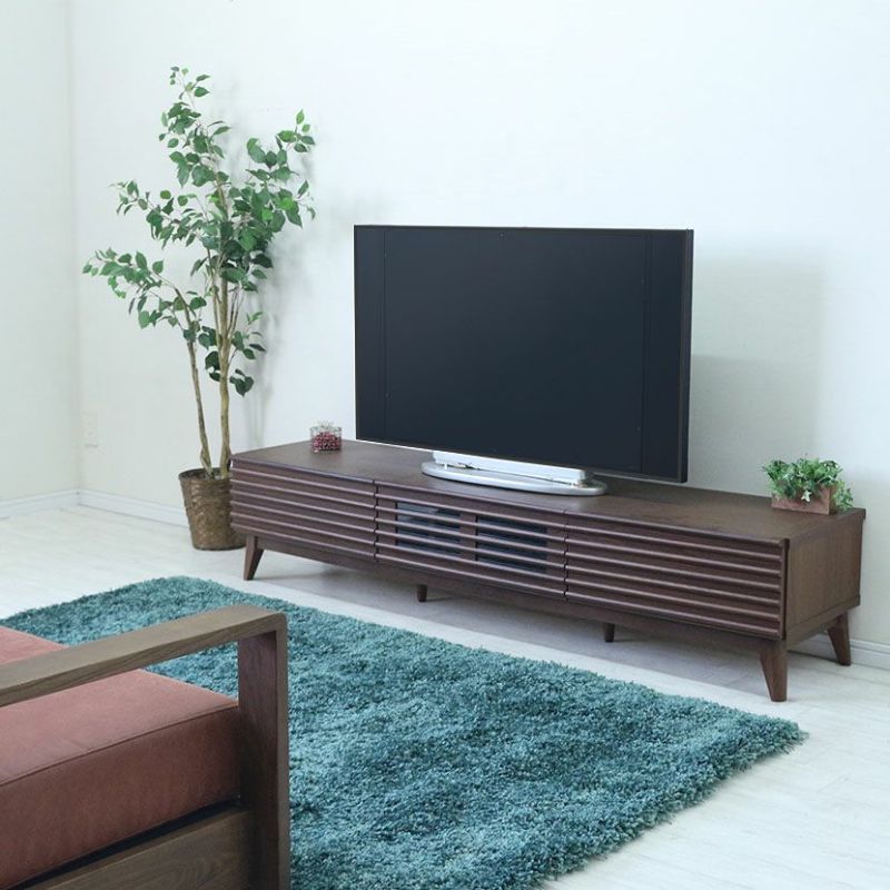 【設置無料】幅200cm 木製 テレビボード ~80型対応 格子デザイン 引出し付き 収納 無垢材 天然木 フラップ扉 ローボード テレビ台 TVボード おしゃれ 北欧 ナチュラル ブラウン ルンバブル