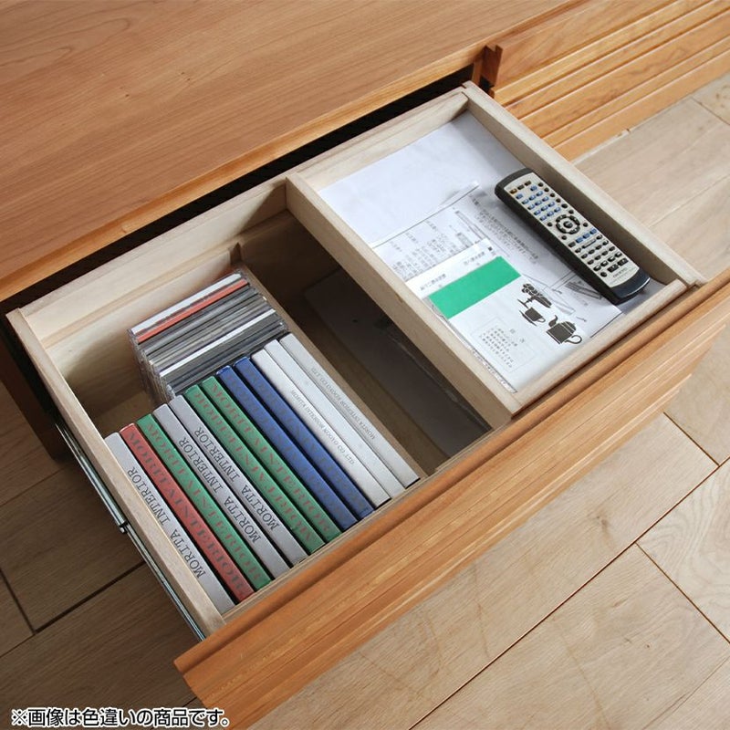 ●引き出しにはCDやDVDの収納に便利な仕切り板と、リモコンや小物などを置く小箱が付いています。