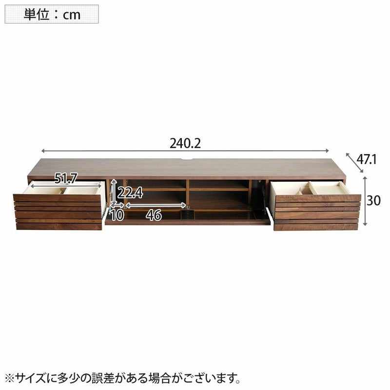 | サイズ | 外寸 / 幅2402×奥行471×高さ300mm 引き出し内部小箱 / 幅240×奥行324×高さ45mm 巾木よけ / 奥行12×高さ80mm |