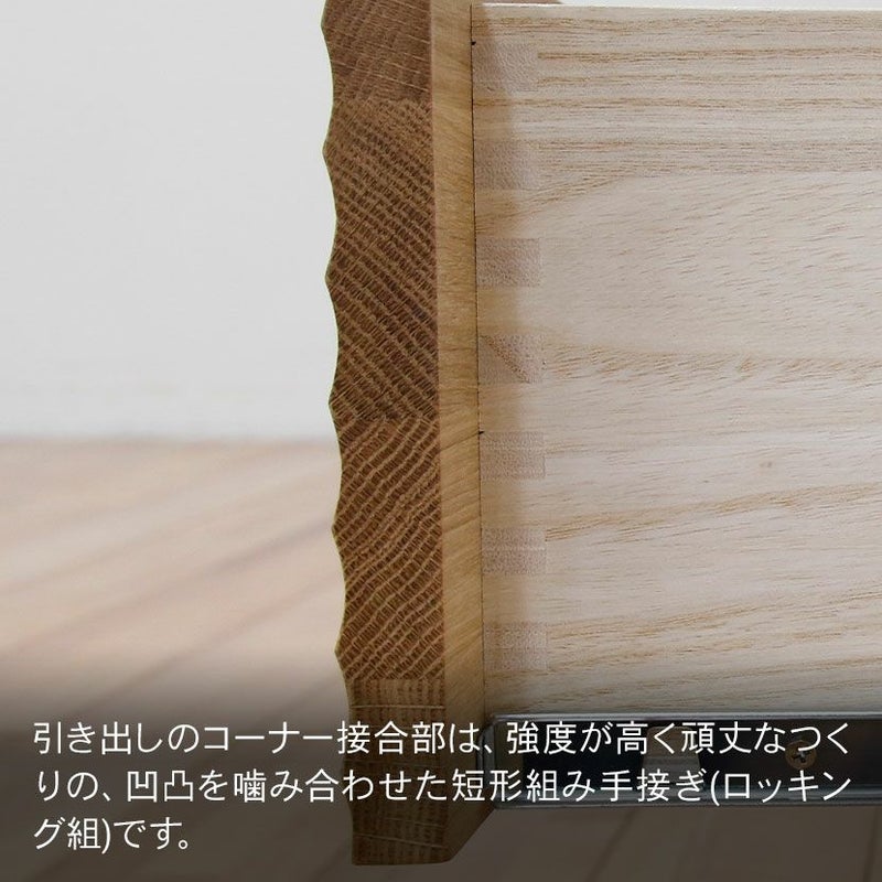 丸田木工株式会社は1958年に福岡県大川市にて設立された老舗家具メーカーになります。独自のデザイン、企画を行い、一貫した自社工場生産にて高品質な家具を生産しています。生涯を伴にする家具だからこそ、素材選びには徹底したこだわりを持っており、商品に使用している木材は樹木の上質な部分だけを厳選し、合板、パーティクルボードは「F☆☆☆☆」のものを使用していますので、人にやさしく仕上がり感や耐久性に格別な違いがあります。また素材だけでなく、高級婚礼家具製造で培ってきた、気密性の高い桐引き出しに強いこだわりを持っていおりう、熟練の職人の手によって丁寧に調整・仕上げがされているのが特徴です。国産家具だからこそできる細かい技術がたくさん詰まっている製品を提供しています。