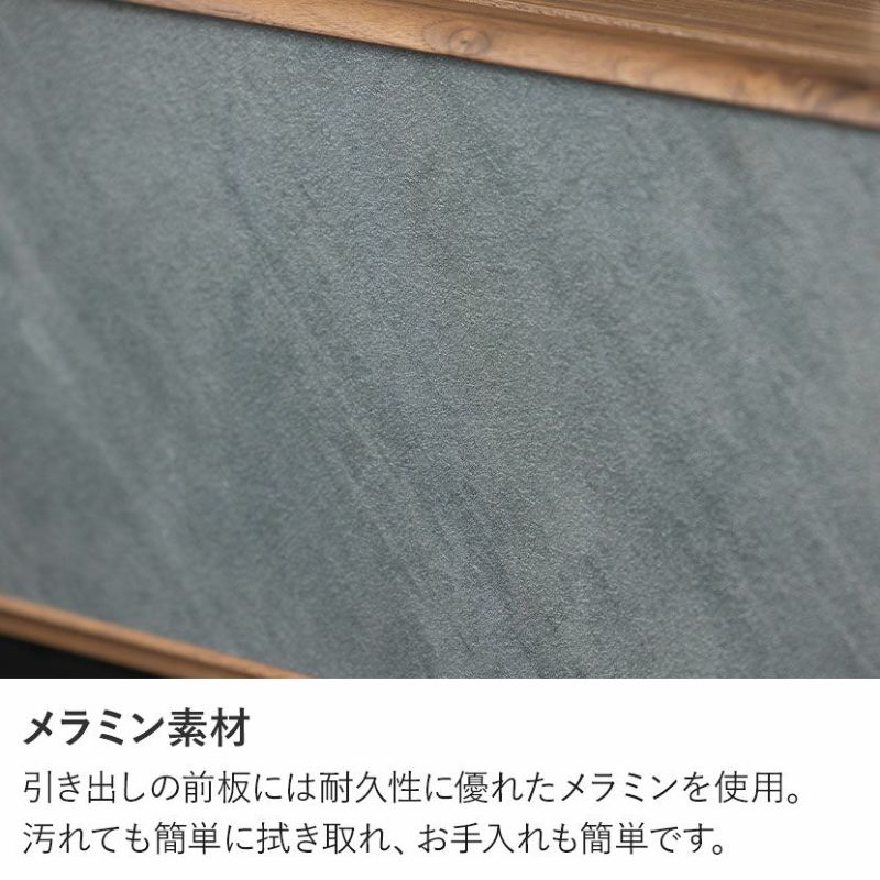 引き出しの前板には耐久性に優れたメラミンを使用。汚れても簡単に拭き取れ、お手入れも簡単です。