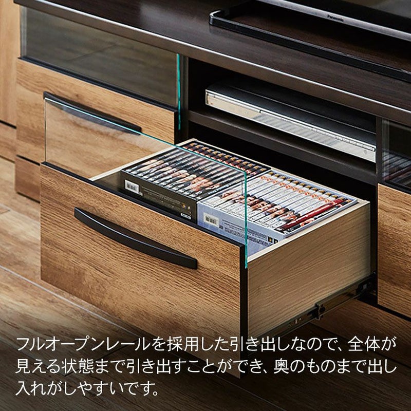 ●フルオープンレールを採用した引き出しなので、全体が見える状態まで引き出すことができ、奥のものまで出し入れがしやすいです。