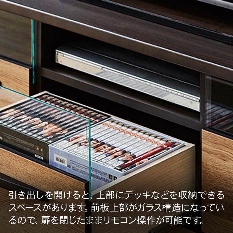 ●引き出しを開けると、上部にデッキなどを収納できるスペースがあります。