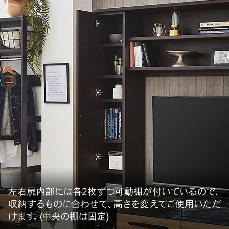 ●左右扉内部には各2枚ずつ可動棚が付いているので、収納するものに合わせて、高さを変えてご使用いただけます。