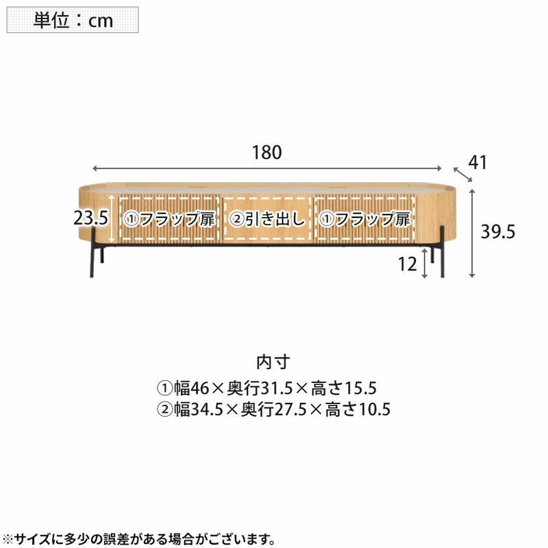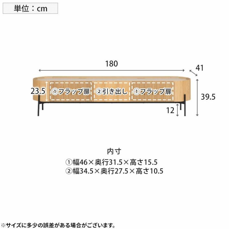 左右フラップ扉部分は幅46×奥行31.5×高さ15.5cm。レコーダーなど電器製品を収納することができます。