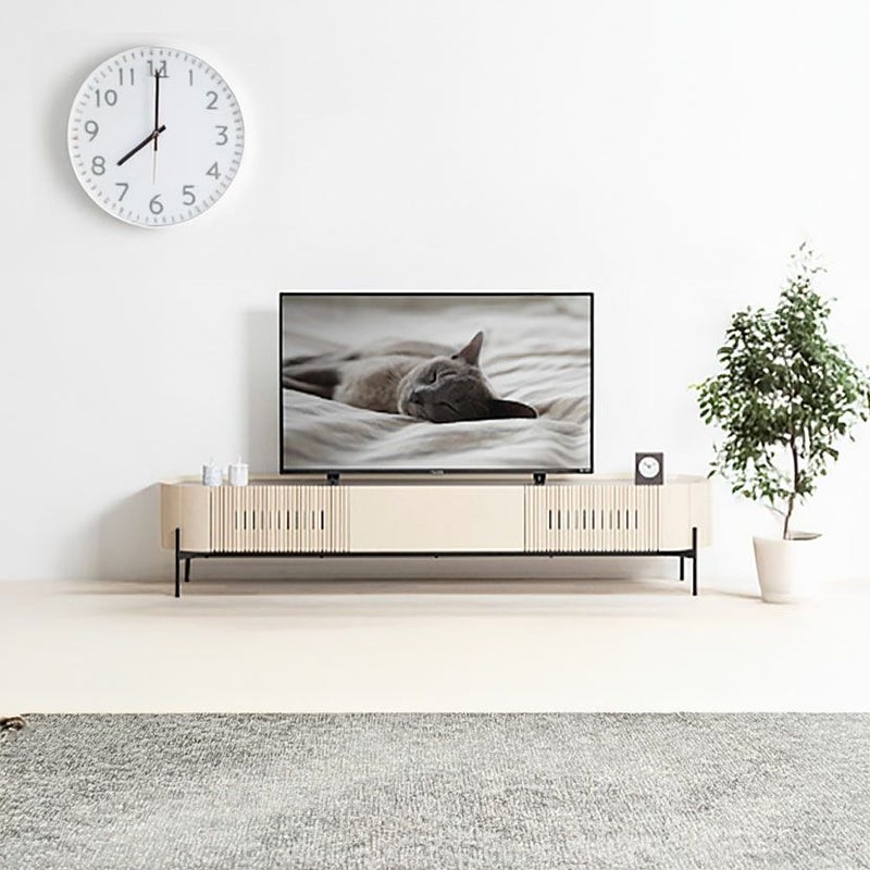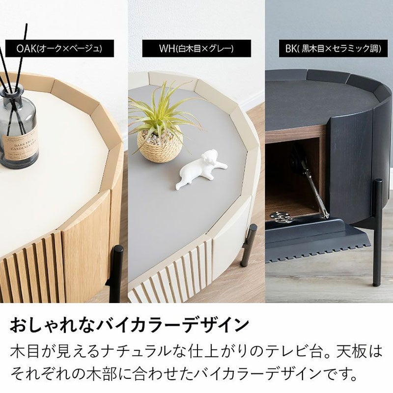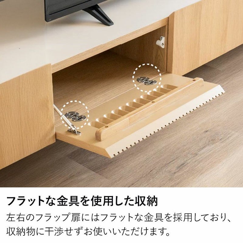 木目が見えるナチュラルな仕上がりのテレビ台。天板はそれぞれの木部に合わせたバイカラーデザインです。