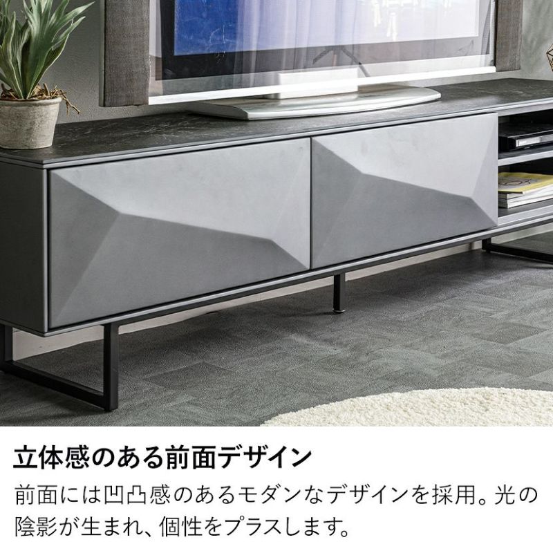 光の陰影が生まれ、単調になりがちなテレビボードに個性をプラス。