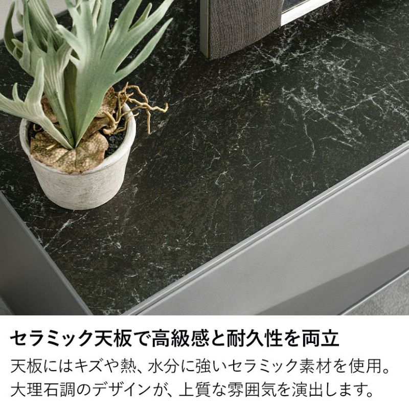 天板にはキズや熱、水分に強いセラミック素材を使用。
