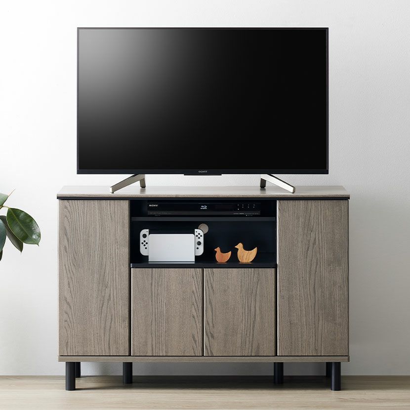 他の画像を見る 幅111cm 木目 キャビネット 収納 大容量 可動棚付き 扉付き ハイタイプ テレビ台 サイドボード 脚付き リビング収納 おしゃれ モダン グレー 寝室 ルンバブル 送料無料 送料無料 ¥ 23,800 税込 カートに入れる