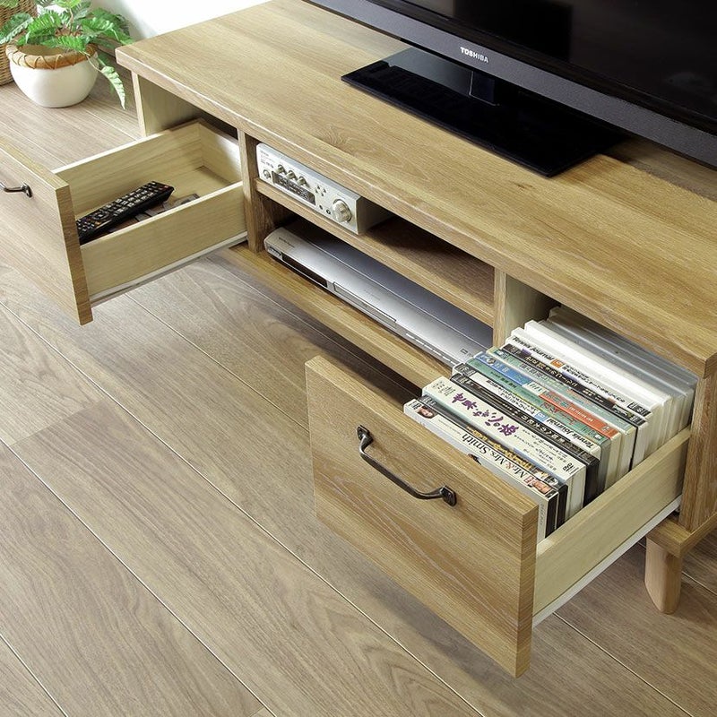 ●左右の収納は、リモコンやDVD・小物までたっぷりと収納可能です。小回りがきくサイズ感の引き出しです。