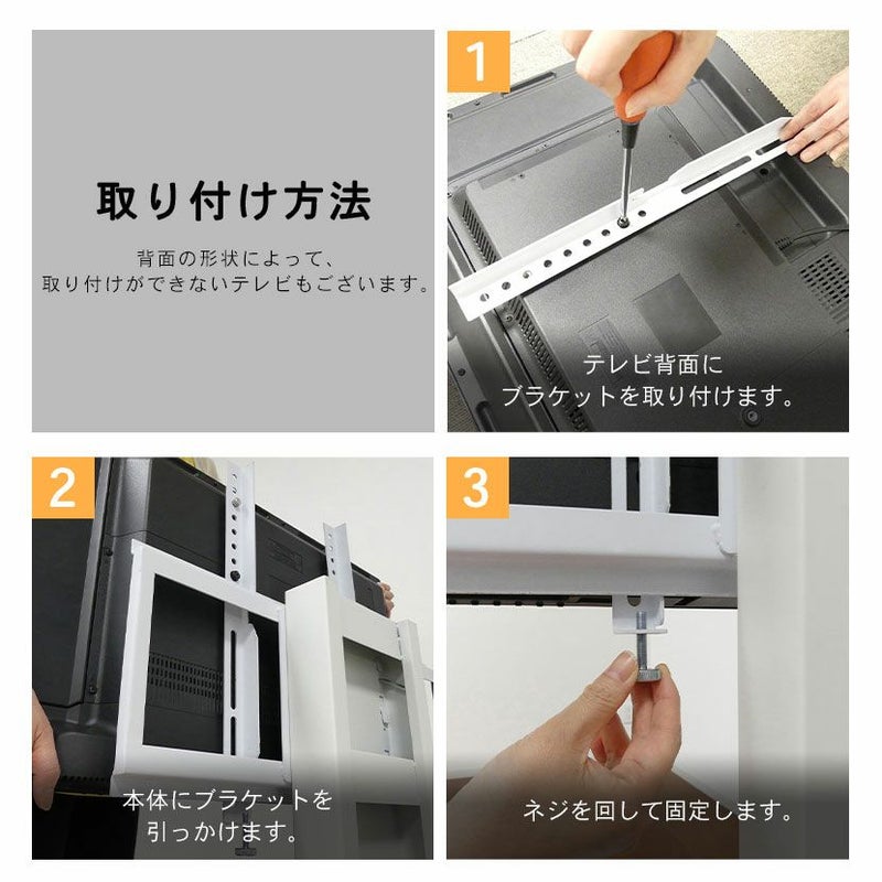 | ご注意 | 背面の形状によって、取り付けができないテレビもございます。 |