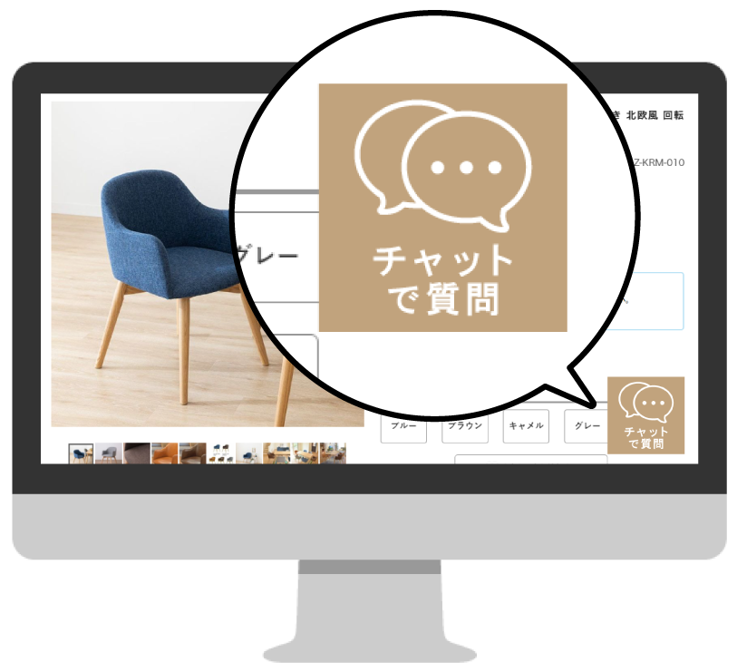 暮らしのデザインのサイトの右下にある、「チャットで質問」と書いてあるマークをクリックしてください。