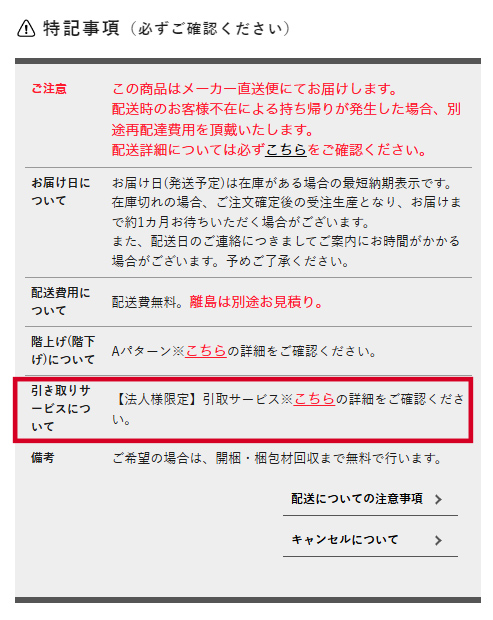 ※引き取りサービス対象商品のみ商品ページに記載されています。