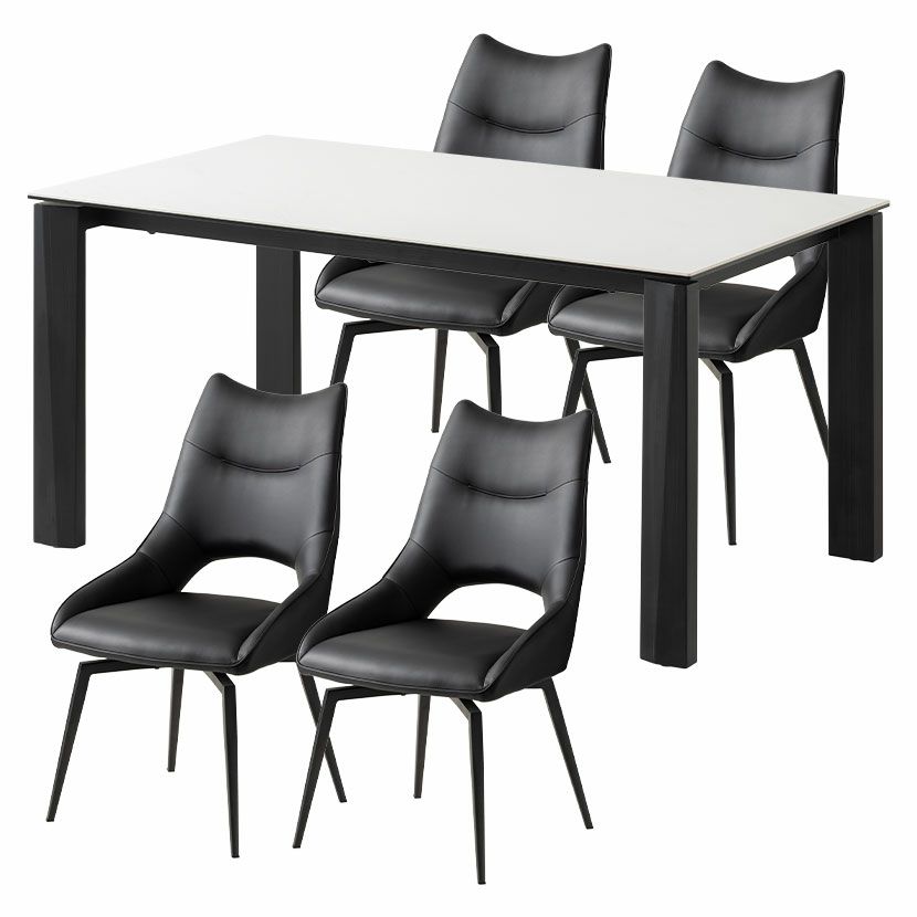 他の画像を見る 【設置無料】4人用 ダイニングテーブルセット 5点 ノワール セラミックテーブル 2本脚 合皮 ダイニングチェア モダン おしゃれ (幅135cm 食卓テーブル×1 食卓椅子×4) 送料無料 送料無料 組立設置付き 組立設置付き ¥ 178,900 税込 カートに入れる