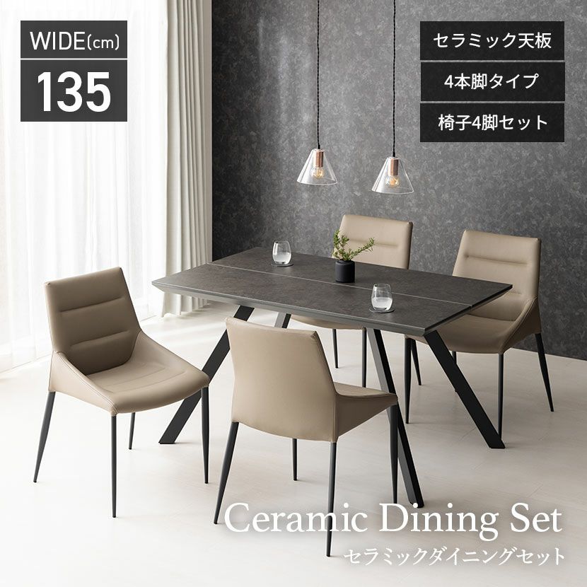 他の画像を見る 【設置無料】4人用 ダイニングテーブルセット 5点 ノワール セラミックテーブル 4本脚 合皮 ダイニングチェア モダン おしゃれ (幅135cm 食卓テーブル×1 食卓椅子×4) 送料無料 送料無料 組立設置付き 組立設置付き ¥ 174,900 税込 カートに入れる