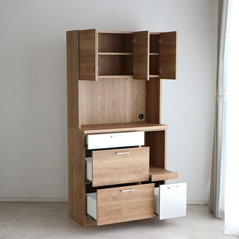 【設置無料】幅80cm シェルフ 日本製 木目調 ラック オープン 収納 引き出し 棚 リビング収納 脚付き キャビネット リビングボード 飾り棚 おしゃれ シンプル モダン
