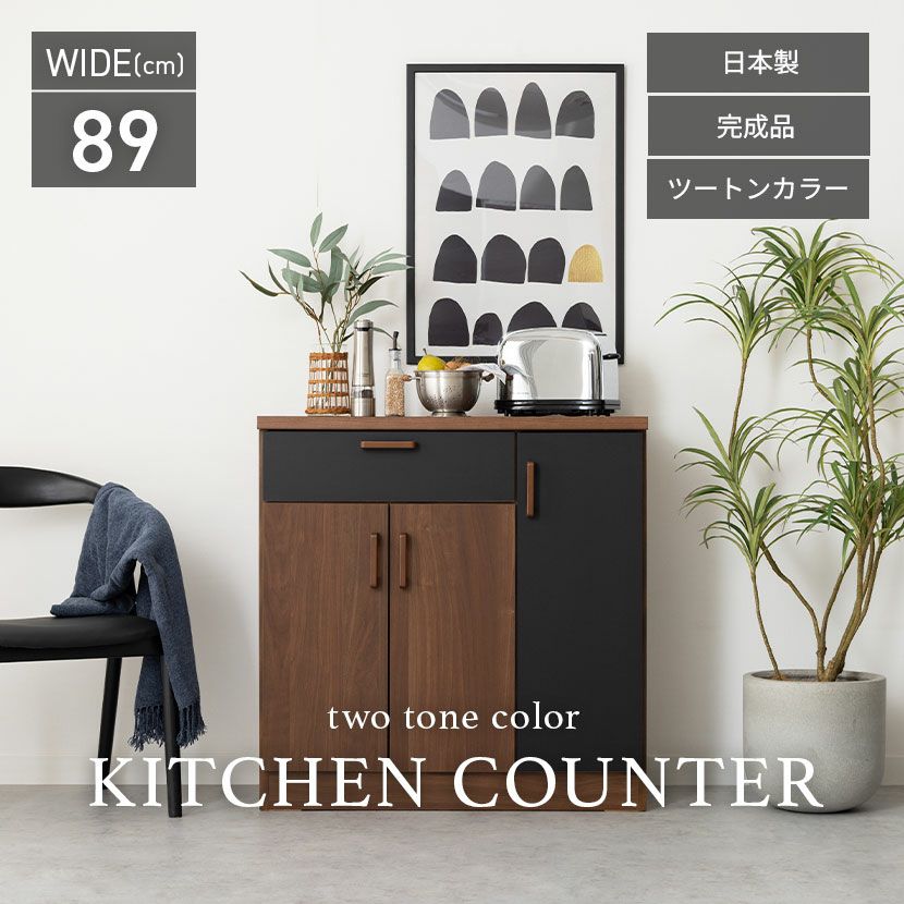 他の画像を見る 幅89cm 木目 食器棚 日本製 TMモデロ 90カウンター BR/BK キッチンキャビネット 引き出し付き レンジ台 キッチンカウンター 北欧モダン キッチン 収納 棚 おしゃれ 送料無料 送料無料 日本製 日本製 ¥ 33,900 税込 カートに入れる