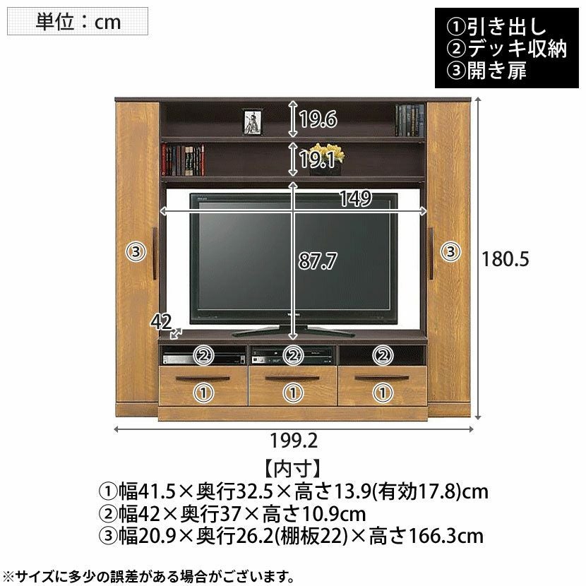 他の画像を見る 【設置無料】幅199.2cm テレビボード ハイタイプ 木目調 引き出し 開き扉 棚 収納 大容量 テレビ台 TV台 TVボード 多目的収納 壁面収納 おしゃれ リビング ナチュラル 和モダン 送料無料 送料無料 組立設置付き 組立設置付き ¥ 81,900 税込 カートに入れる