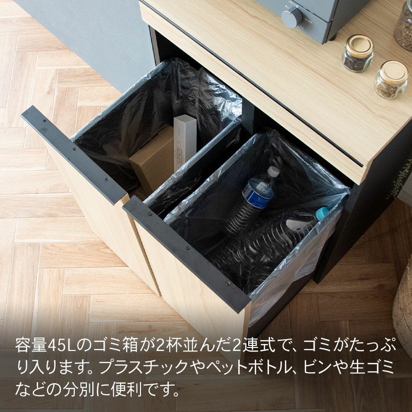 他の画像を見る 幅60cm 分別 ゴミ箱 2連 45L ダストボックス 引出しタイプ 木目調 家具調 収納付き キャスター付き ダストボックス レンジ台 おしゃれ キッチン ナチュラル ブラウン 送料無料 送料無料 ¥ 21,690 税込 カートに入れる