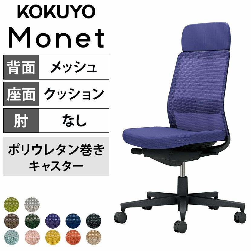 他の画像を見る 【設置無料】 ワークチェア モネット Monet オフィスチェア 肘なし ハイバック 樹脂脚 ウレタンキャスター ショルダーサポート付き 背メッシュ 座面布張り 背座同色 本体/脚ブラック C03-B101U コクヨ 椅子 送料無料 送料無料 組立設置付き 組立設置付き 日本製 日本製 ¥ 72,900 税込 詳細を見る