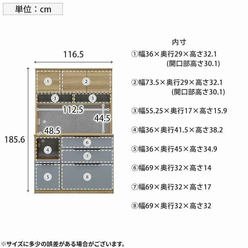 他の画像を見る 【設置無料】幅116.5cm 食器棚 日本製 カップボード 収納 キッチンボード コンセント付き キッチンキャビネット おしゃれ 収納棚 ハイタイプ 引き出し ナチュラル グレー クーポン対象 クーポン対象 送料無料 送料無料 組立設置付き 組立設置付き 日本製 日本製 ¥ 119,000 税込 カートに入れる